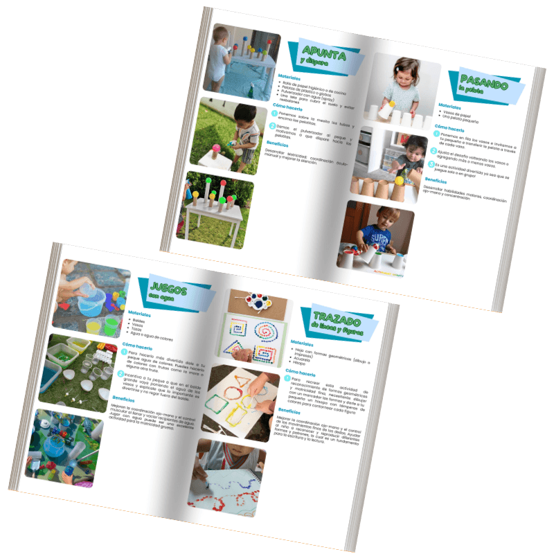 Un ebook práctico con más de 40 ideas de juegos diseñados para niños de 1 a 4 años, que fortalecen: